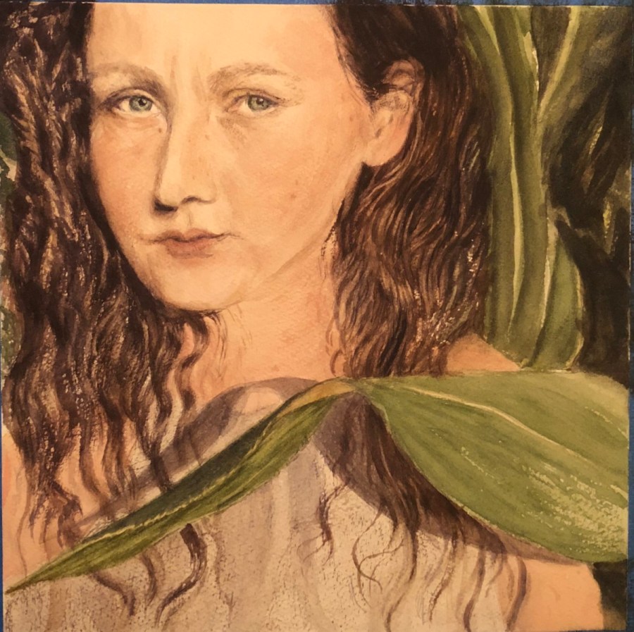 Corn Maze 14'' x 14'' watercolor on Arches 140 lb. cold pressed. The fourth of my five children. The third of my four daughters. This painting describes her well. She swims apart from the Shoal, creative and enigmatic.