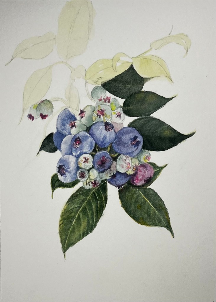 Inspired by the fruit belt of Southwest Michigan and the urging of my daughter Miriam, Íve been studying botanical artists like Billy Showell, Anna Mason, and others in an attempt to paint all things beautiful. Michigan provides so much subject material. Picking season, starting in late spring and going to mid fall, gives us all kinds of berries, cherries, peaches, grapes, apples, pears, mushrooms, all kinds of veggies. The farmer´s market an roadside farm stands are overflowing with abundance. Pure Michigan finery. These are a few Íve painted this year.